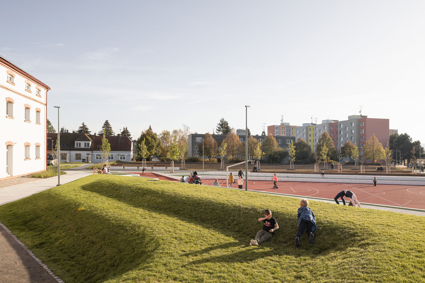 Kdysi uzavřený vojenský areál se proměnil v živý městský park, kde místo kasáren dnes rostou stromy a setkávají se lidé. Revitalizace nejen vrátila území veřejnosti, ale také mu dala novou tvář s chytrými řešeními pro zadržování vody a zmírnění dopadů klimatické změny. Pod korunami platanů se sportuje, odpočívá i slaví a dříve nevyužitý prostor tepe životem. Město získalo místo, které spojuje historii s moderní udržitelností.